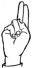 На ћирилици написано НИНА ТУБИН састоји се из 9 слова [?]. Исписано ћириличном једноручном азбуком за глувонеме: